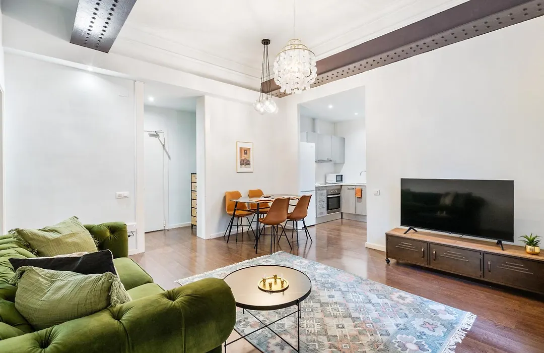 Situato nel distretto Sant Antoni, l'appartamento offre un rapido accesso all'aeroporto di Barcellona El Prat, in 19 minuti di auto. Gli ospiti possono visitare la Plaça d'Espanya a circa 5 minuti in auto. È inoltre possibile raggiungere il Parco Güell, che si trova a 3 km.
